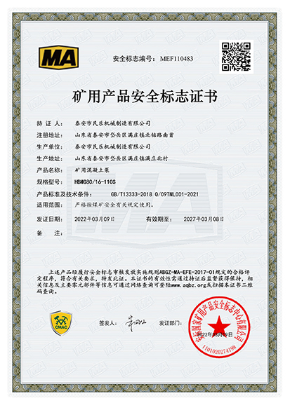 HBMG30/10-45S礦用產(chǎn)品安全標(biāo)志證書(shū)